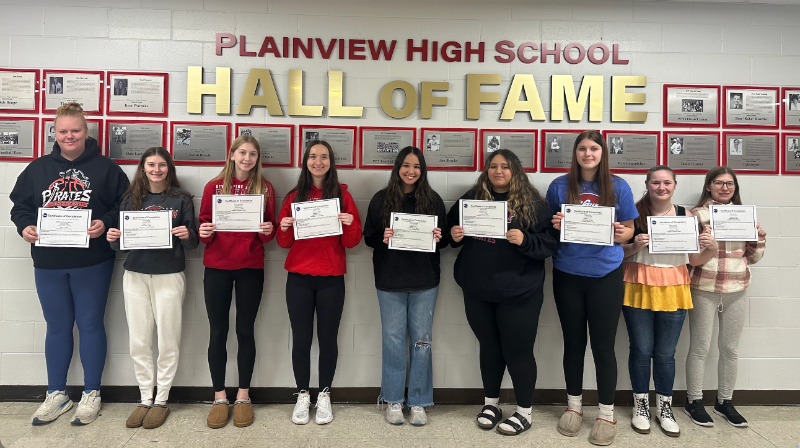 Nine dedicated students in the Plainview Early Childhood Education program have successfully completed the Prepare to Care: Health and Safety Training under the guidance of Mrs. Jacobsen, FCS Instructor. This achievement represents a significant step forward in their careers as early childhood educators.
