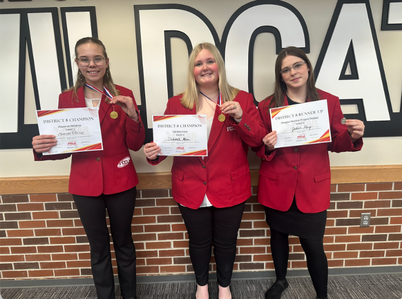 FCCLA Members Dakotah Albin, Scarlet Torrey, and Jaden May, all returned as state qualifiers after competing at the District 8 FCCLA STAR (Students Taking Action with Recognition) Competition on February 2 at Wayne State College. State STAR Competition will be held in Lincoln March 29-31 in conjunction with the FCCLA State Conference.