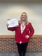 Dakotah Albin earned her second trip to state by receiving a gold medal and being named District Champion in Job Interview Level 2. To compete in Job Interview, Albin was required to develop a portfolio and participate in a formal job interview. The portfolio consisted of a job specification sheet, job application, cover letter, resume, letters of recommendation, examples of her ability to communicate in written form, examples of special skills related to the job, and essays explaining her career-related education and educational enhancement opportunities. She then participated in an interview for the job she applied for in her portfolio. Albin applied for a childcare position. Through the interview process she was required to communicate a personal understanding of job requirements, use the portfolio to support her responses, and answer questions about the portfolio.
